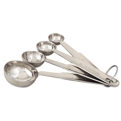 Acier inoxydable. 1/4, 1/2, 1 c. à thé et 1 c. à table.